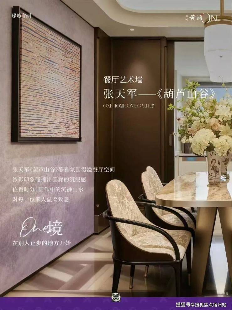 走进室内,艺术感更显细腻: 餐厅一侧墙面 点缀着张天军《葫芦山谷》系列独家共创画作;