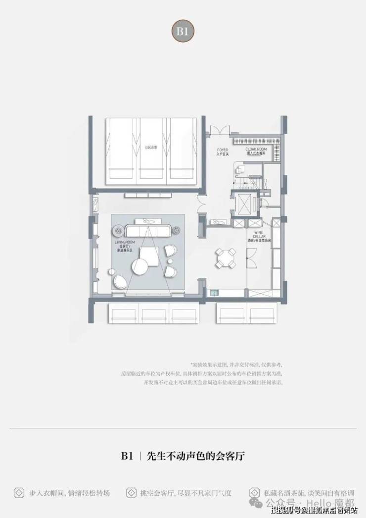 从容抵达步入地下会客厅,转角衣帽间换一身便服,轻松切换身份情绪