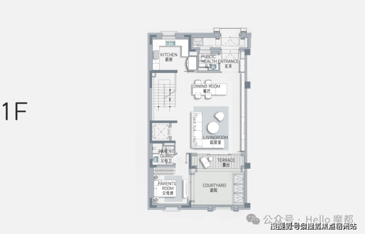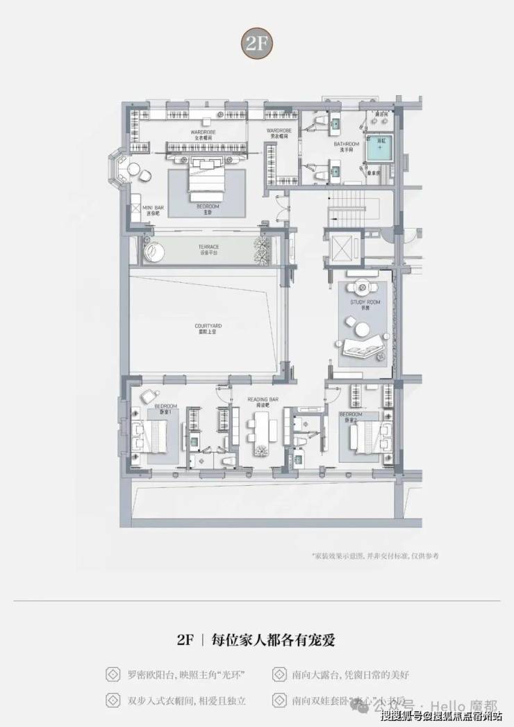 一层长辈套房设计,南向独立小庭院,莳花弄草,晨练太极自在四季