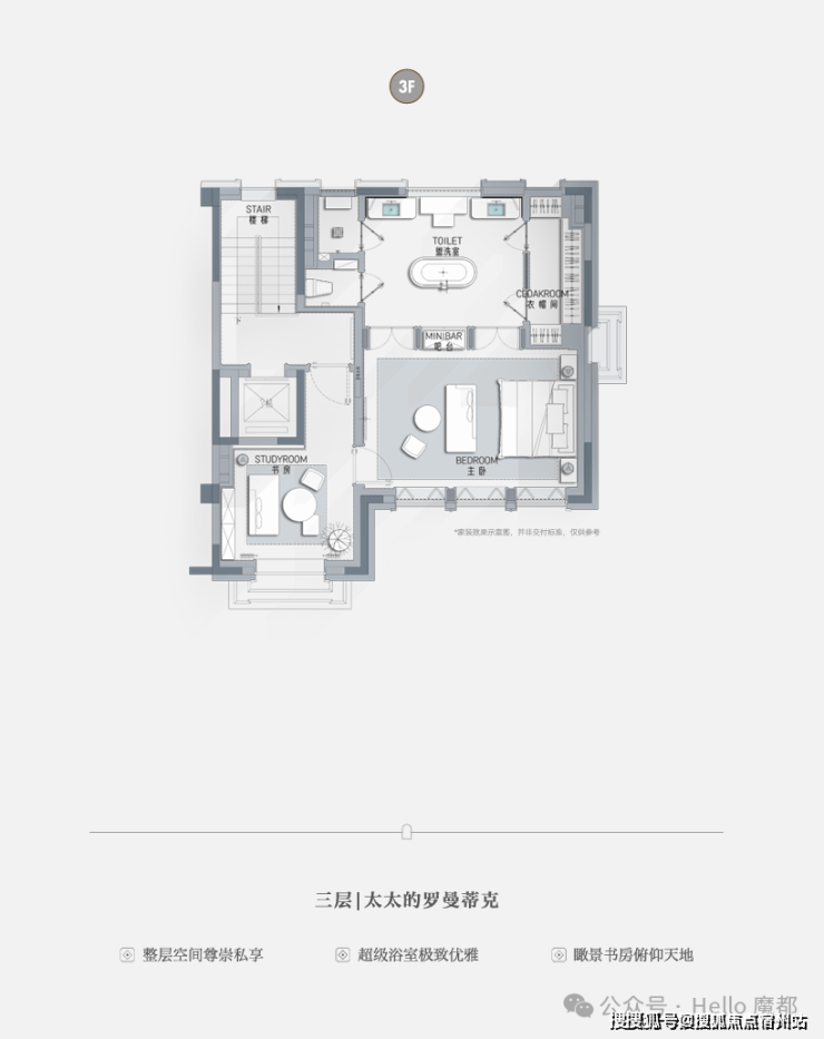 主卧双卫双步入式衣帽间,淋浴、花洒、桑拿房,相爱却各有私密