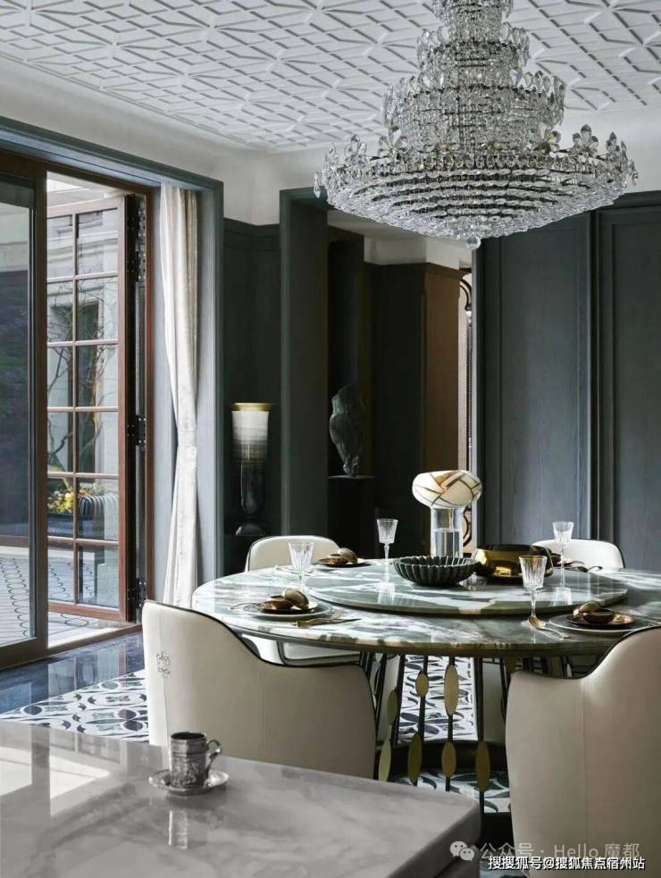 建筑面积约495㎡传家大宅,海派气质内外辉映; 🏄🏻♂️弘安里售楼处电话:400-8894-986✅✅深色木饰面与柔和的刺绣主背景,框定空间层次格局,营造稳当厚重的氛围基调,法式留白的墙面与顶部造型,与原筑提取的典型拼花地砖相呼应,经典的精致与典雅,海派传家大宅的气度不言而明。 🏄🏻♂️弘安里售楼处电话:400-8894-986✅✅