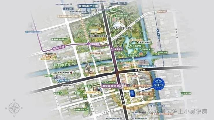 项目地处奉贤新城,属于奉贤新城核心位置,与5号线奉贤新城直线距离站约300米;周边配套齐全,有上海之鱼公园群,五一公园,百联南桥购物中心、龙湖天街、上海南桥国际广场、九棵树艺术中心、奉贤博物馆、南上海体育中心(在建)等。