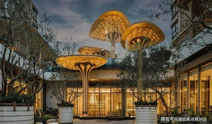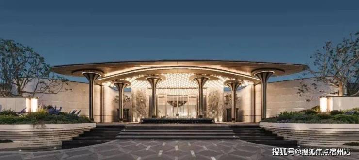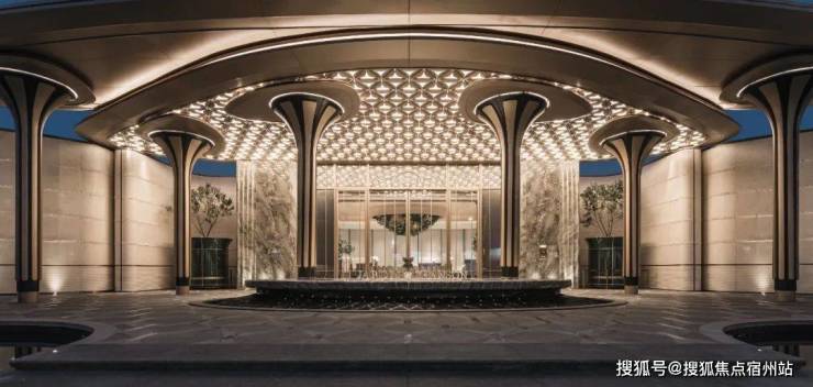 项目门头设计恢弘大气,设计师从“浮岛”中汲取灵感,将立柱化为悬浮雕塑,以自然的秩序与美学,共同勾勒出轻盈而富有仪式感的花瓣造型。