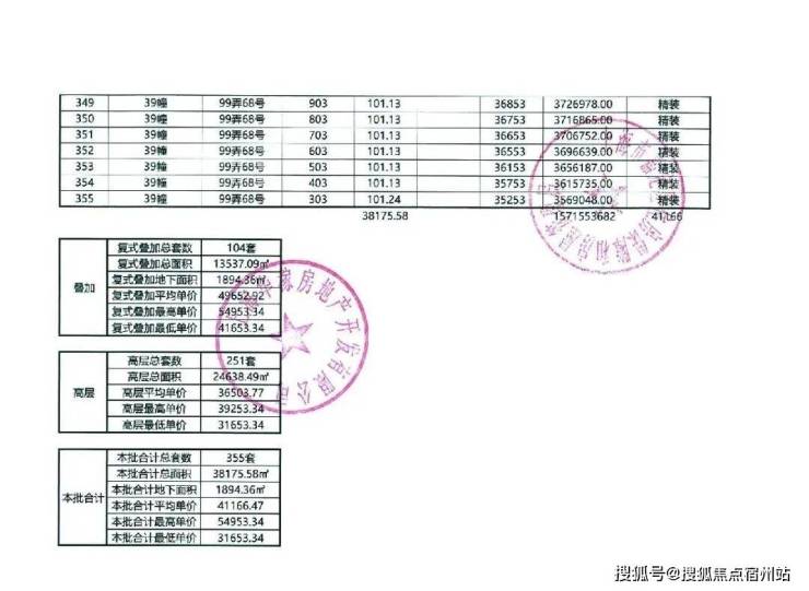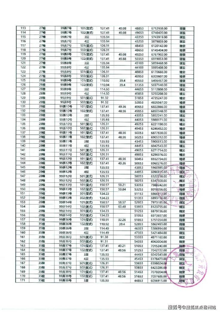 以下为项目最新一房一价表