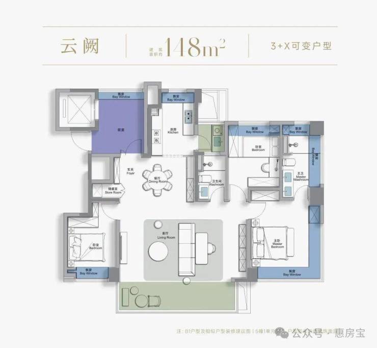其四,主卧270°景观飘窗(仅5#、10#楼边套),采用大尺寸玻璃,晨起可观朝阳,夜晚可赏繁星,独立衣帽间与全明双台盆主卫,更显豪宅级尊崇。