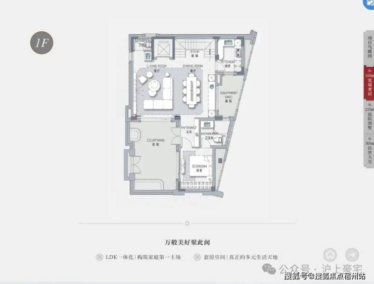 据了解,主力户型包括建面约235㎡庭院别墅、约305㎡传世大宅,满足时代人物的不同品味。