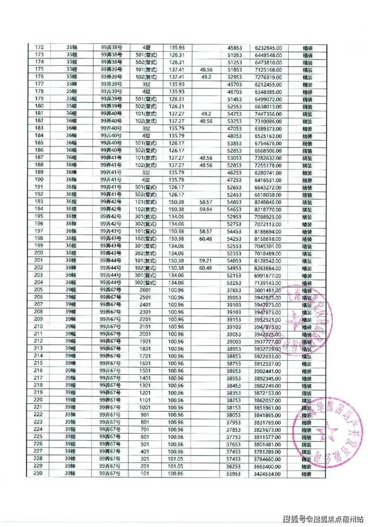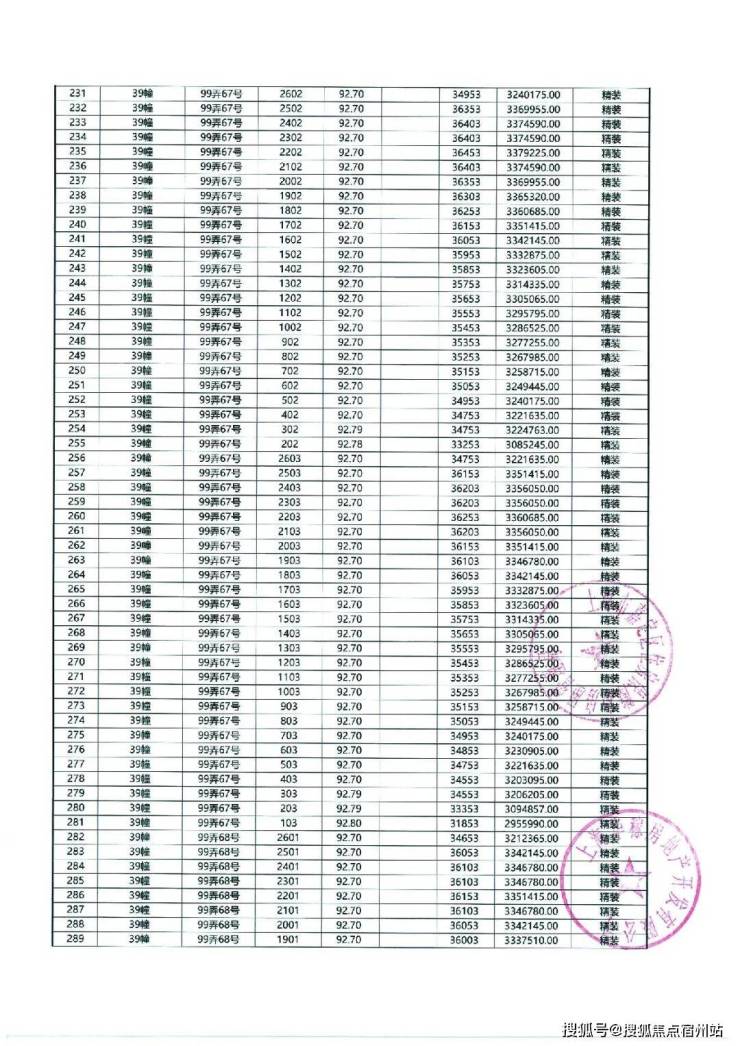 以下为项目最新一房一价表