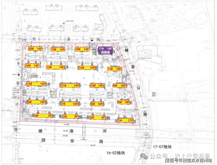 根据设计方案显示, 14-01地块拟建12幢14F小高层,4幢17-18F高层,3幢5F多层,1幢层高18F的保障房。