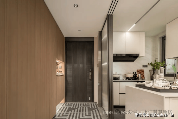 不管是小碗、大碗还是其他特殊餐具,都有不同的大小规格的抽屉可供整齐的摆放。让整个厨房的空间,得到充分的“扩容”。满足业主对于烹饪、收纳的所有需求。其次还有玄关部分: