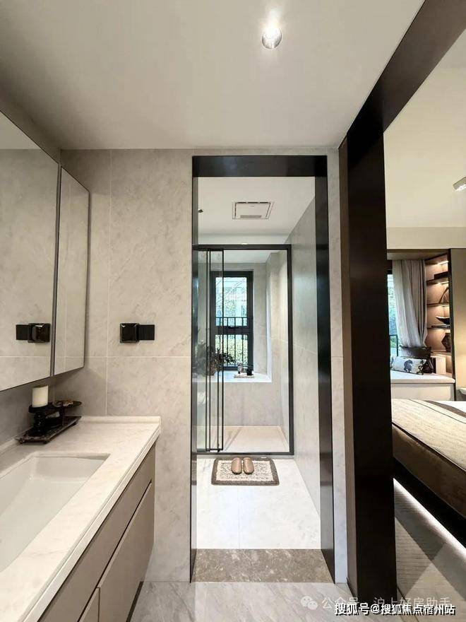 归家门厅设计为 弧形顶棚,非对称构图,圆润的形式提供给业主放松的情绪价值。可以说是处处体现人居的松弛感和舒适度。