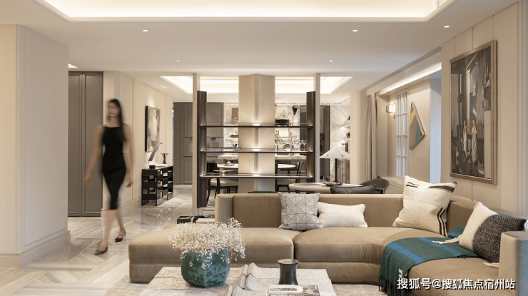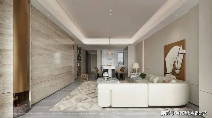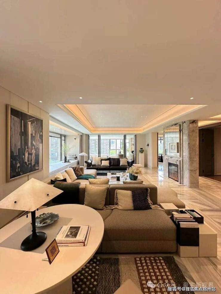 会客空间约有50平,餐客厅一体化足足有近百平 ,尺度感超强。