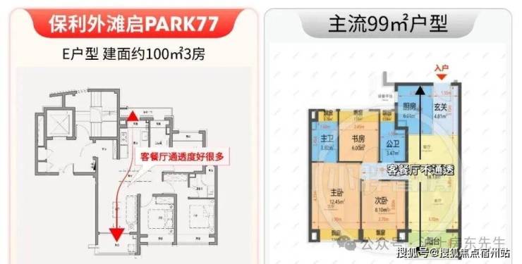本次,保利外滩启PARK77的主力户型为建面约99-103㎡三房,与建面约135-137㎡四房,将延续系列 “全明格局+高空间使用率” 的户型优势。