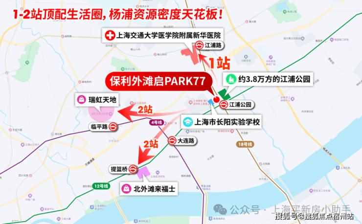 杨浦内环12/18号线江浦公园站双轨上盖, 保利外滩启PARK77 火热在售中!总价1100万起!