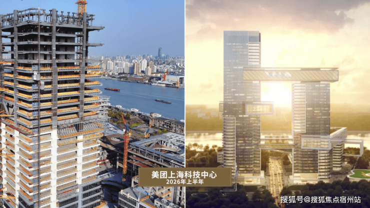 中节能上海首座、美团上海科技中心/杨浦滨江创智中心、哔哩哔哩新时代产业园(施工进度实景-未来效果图)