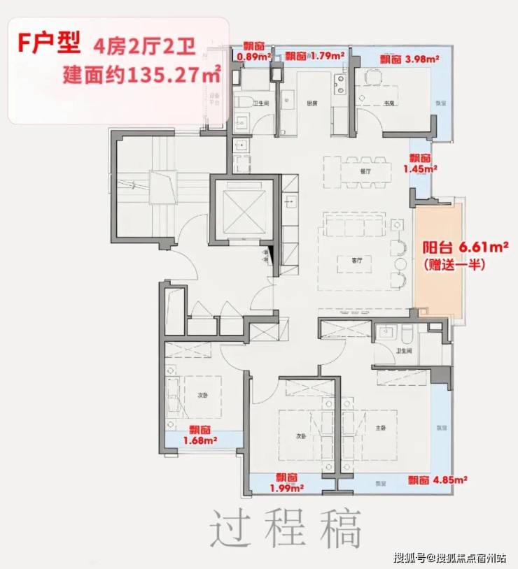 全屋7飘窗+半封阳台,赠送面积近20㎡,实得率约94%。