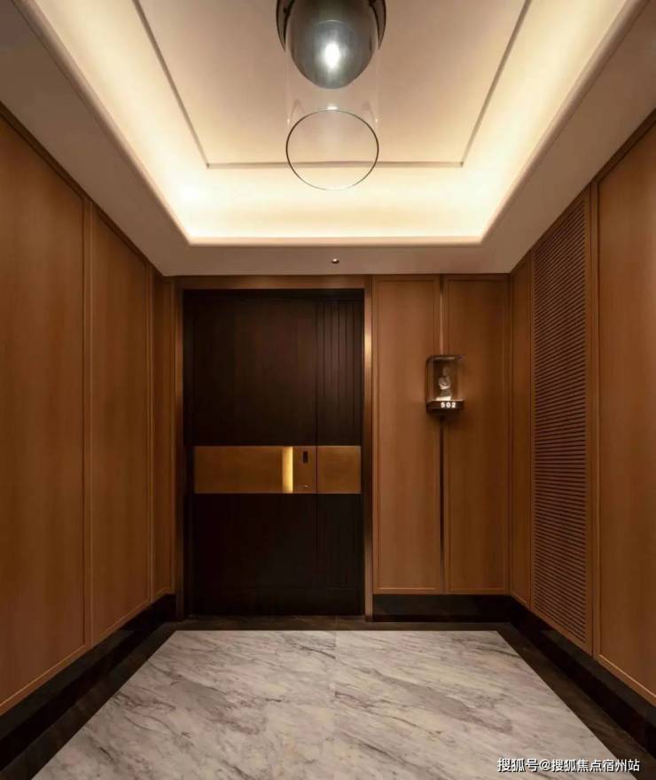 电梯厅的公区,灯光以及材质上都呈现高级和艺术调性 , 没有很花里胡哨,但却低调奢华,归家的仪式感拉满。