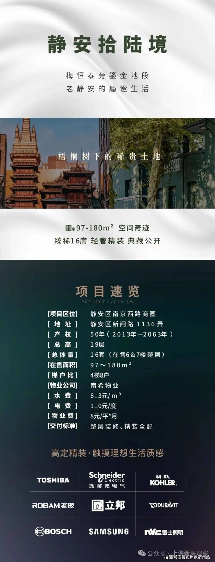 老静安南京西路板块【静安·拾陸境】面积97m²-180m² 臻稀16席 轻奢精装 (报价6万起)售楼处线上火热预约中!