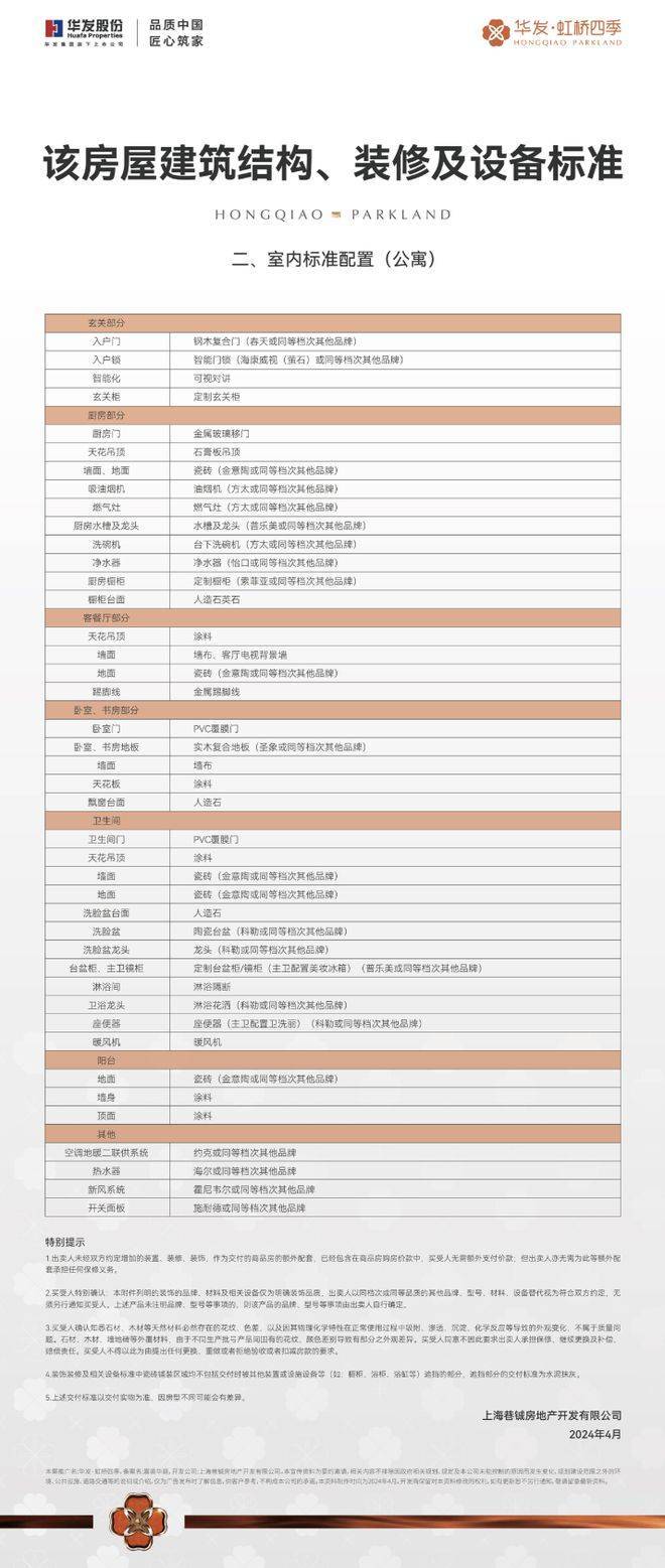 更有霍尼韦尔(或同等档次品牌) 的新风、方太(或同等档次品牌) 的油烟机和洗碗机、科勒(或同等档次品牌) 的龙头和台盆、百年约克、圣象、施耐德等(或同等档次品牌) 其他品牌国际一线品牌为生活保驾护航。