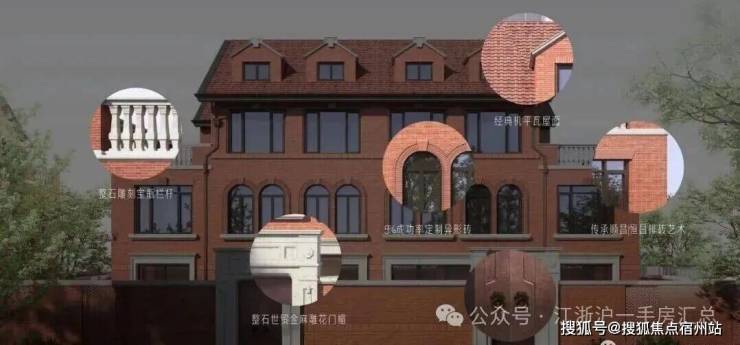 4、延续玖里最受欢迎的现代复古建筑风格,同款砖艺与屋面瓦材,随处可见天然石材整石雕刻工艺,新一代玖里系水岸风貌作品