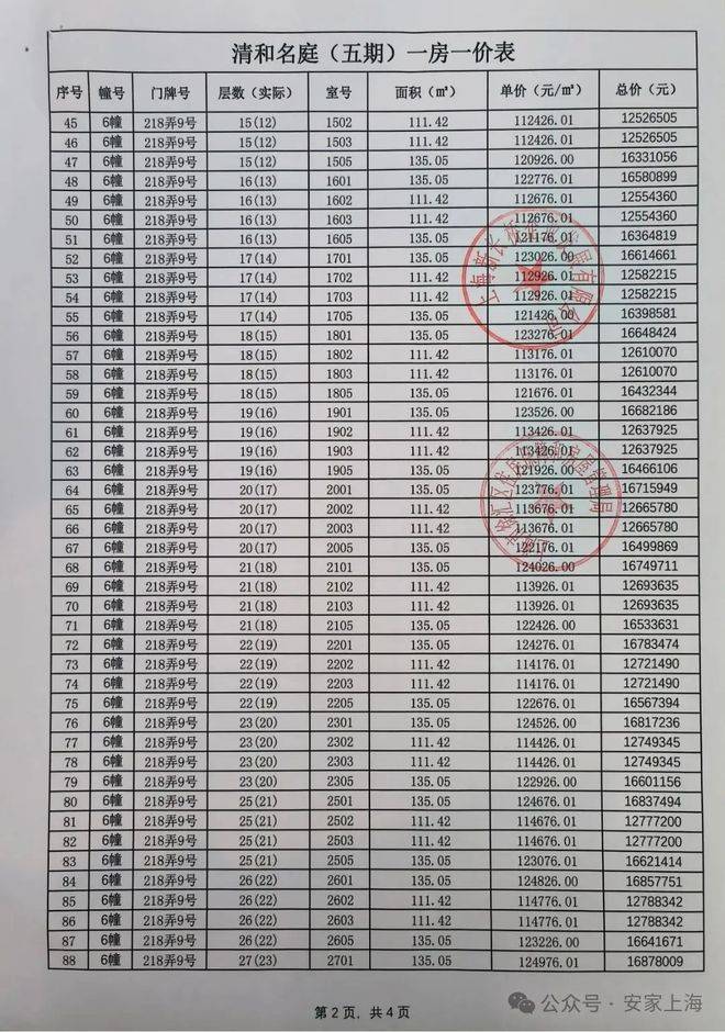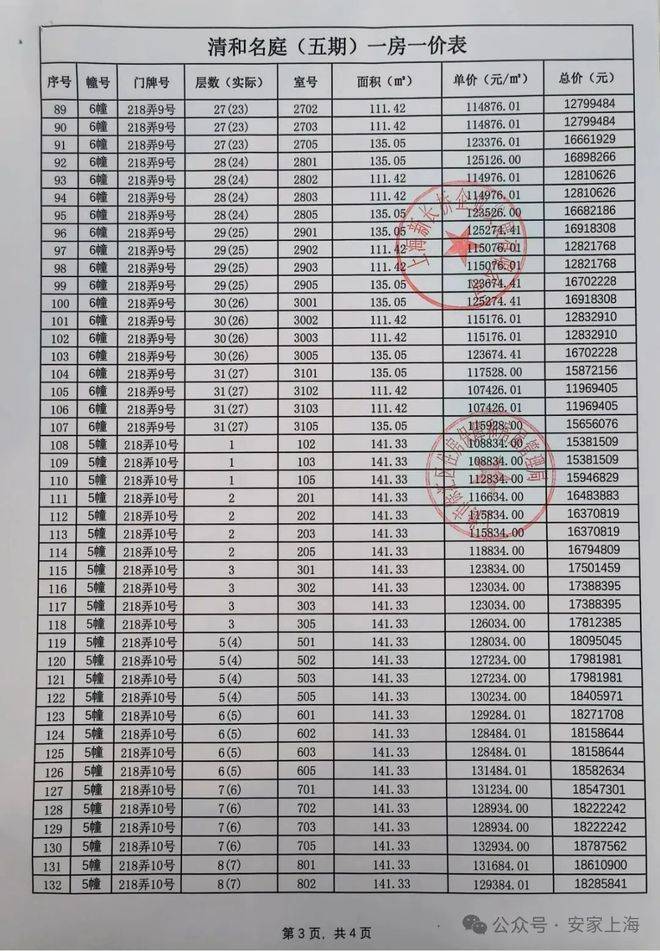 最新消息:一房一价表发布!徐汇滨江「海上清和玺」五期7月23号认购!推出建面约111-141㎡三房四房,均价约11.91万/㎡!
