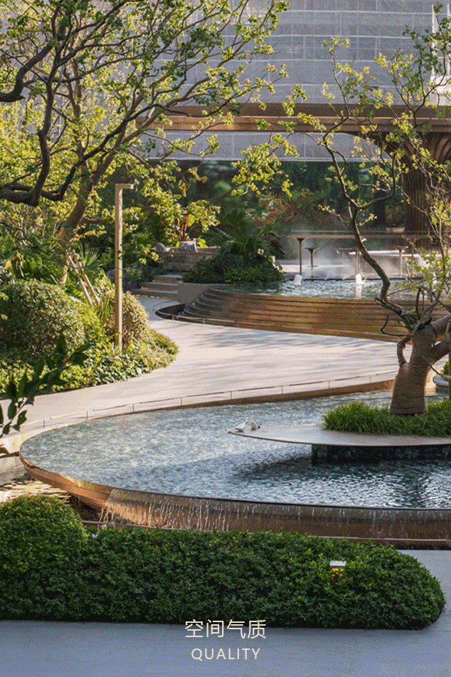 九园:潮汐花园(社区外围口袋花园)、浔湾秘境(会所式入户)、社交剧场、漫游森境、下沉会所、阅读花园、社交花园、自然博物馆等。