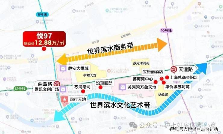 回过来看悦97,它是真正的苏河湾核心位置,真正揽尽了苏河湾的精华!