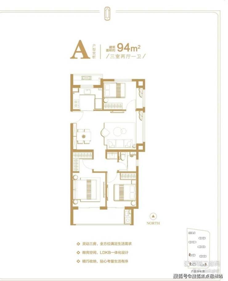 户型方面,主力产品建面约94-122㎡3-3+1房。