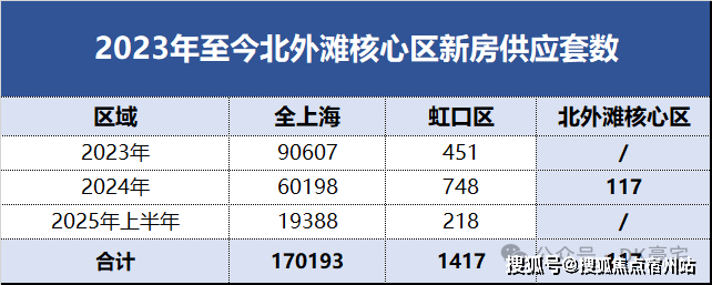 2023年至今,北外滩新房入市套数仅占虹口新房的约8%,占全市新房的0.07%——相当于每1万套新房中,仅有7套属于北外滩。(数据整理自公开市场信息,仅供参考)