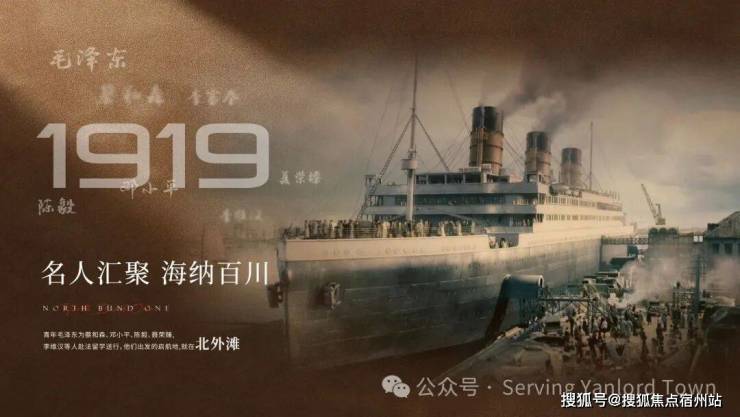 1919年青年毛泽东为蔡和森、邓小平、陈毅、聂荣臻北外滩李维汉等人赴法留学送行,他们出发的启航地,就在北外滩。