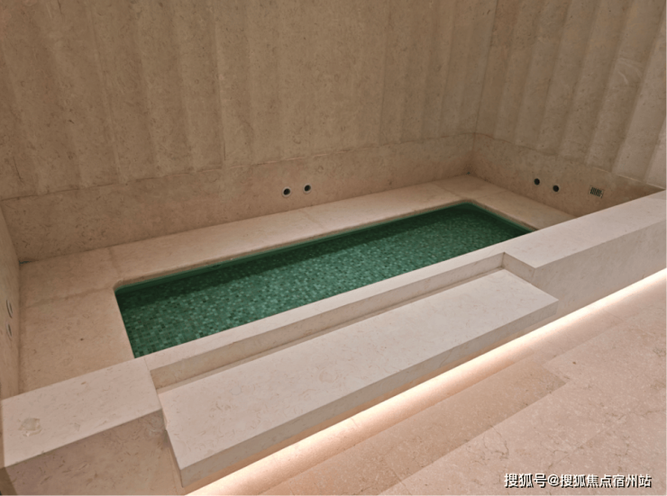 在泳池的区域背后做了一个「放松池」。如果业主游泳累了或者是健身累了,都可以在这里放松按摩,这里带有按摩功能,用来放松肌肉是一绝。