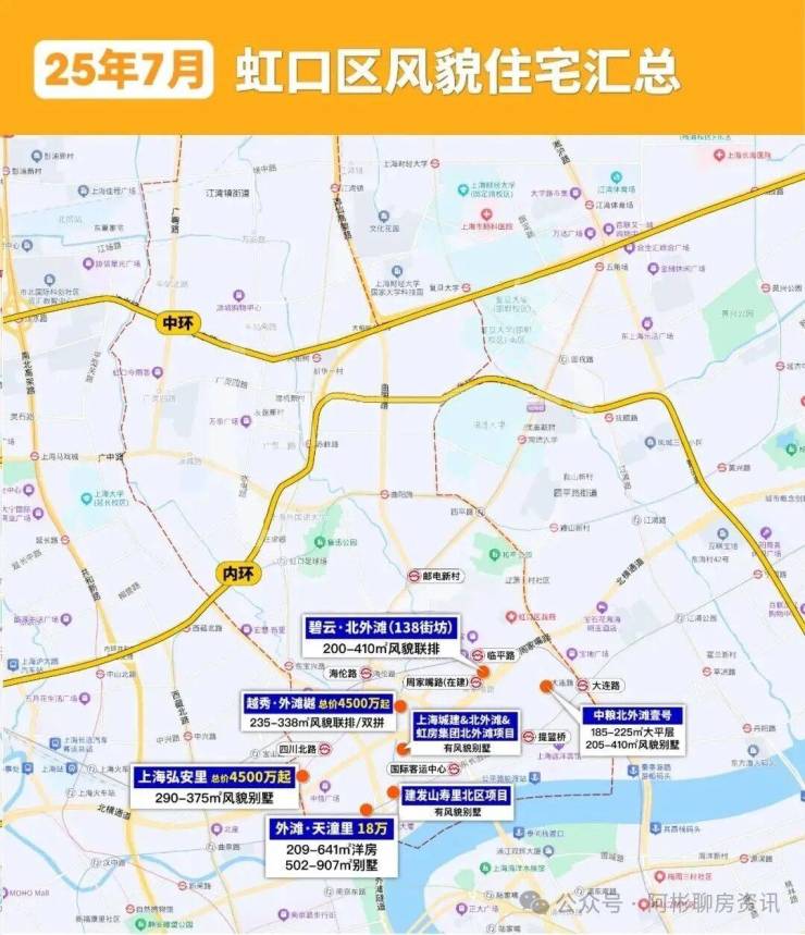 目前已知有风貌别墅产品包括 弘安里、天潼198、碧云北外滩138街坊、越秀·外滩樾、中粮北外滩壹号、上海城建&北外滩&虹房集团北外滩项目、建发山寿里北区项目。