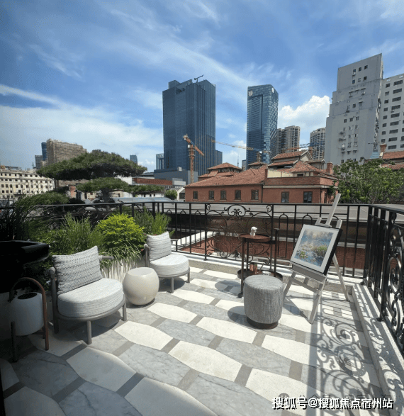 凭栏远眺,近处是百年石库门的红瓦飞檐,远处是上海城市名片东方明珠,皆是业主独享的城市画卷。