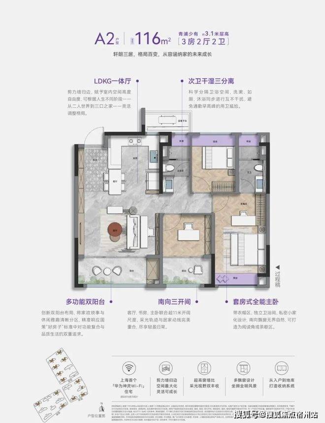 再者,是项目精益求精的产品品质,处处彰显匠心与用心。作为联发在上海的标杆力作,金海雲墅在产品打造上可谓不遗余力。从建筑外观来看,项目摒弃了传统的真石漆,创新性地采用铝板 + 铝合金系统窗的复合体系,以游艇美学为设计灵感,线条流畅简洁,质感高级恒久。顶部 2.4 米挑高的弧形铝板飘檐,搭配精致的金属收边,不仅美观大气,更经得起时间的考验,让建筑成为城市中一道恒久靓丽的风景线。步入社区,约 64 米的酒店式恢弘门廊,仪式感十足,让每一次回家都充满尊崇感。约 2.5 万平方米的沉浸式园林,精选十余种名贵乔木,精心营造四季有景、步移景异的诗意景观。下沉式庭院与高端泛会所,配备了壁球室、高尔夫模拟室、健身房、瑜伽室等多元功能空间,为我们业主提供了休闲、社交、健身的专属领地,让奢适生活触手可及。