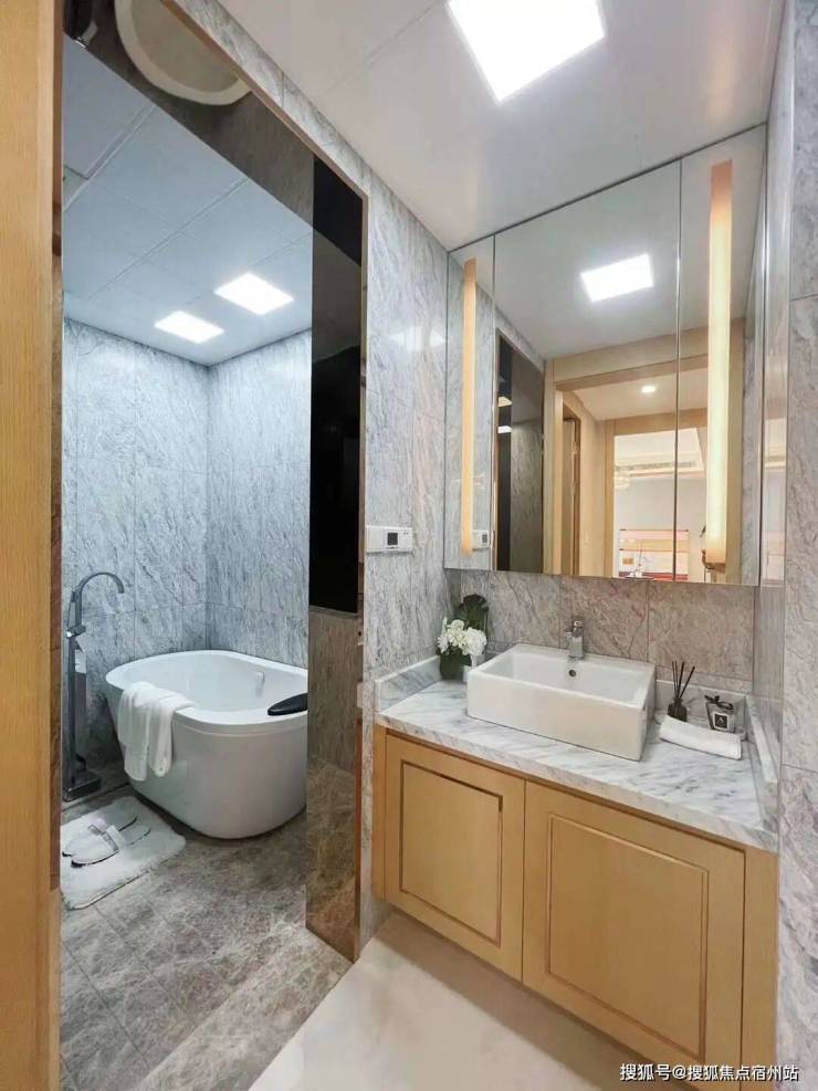 花洒、龙头、五金件到洗手台、浴缸、带烘干除臭功能的智能马桶,选用的是国际知名品牌HCG(和成卫浴);
