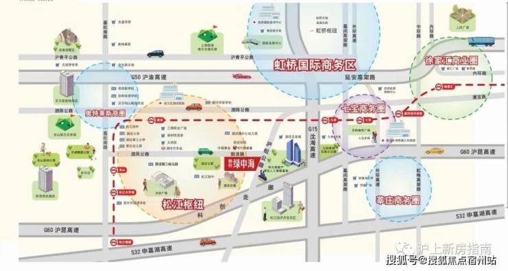 其次,泗泾拥有9号线,通过这条东西走向的烫金大动脉,泗泾绿中海将拥有 3站七宝、6站漕河泾、9站徐家汇的通勤效率。 而为了更好的满足业主的需求,泗泾绿中海项目 配置社区班车往返地铁站。