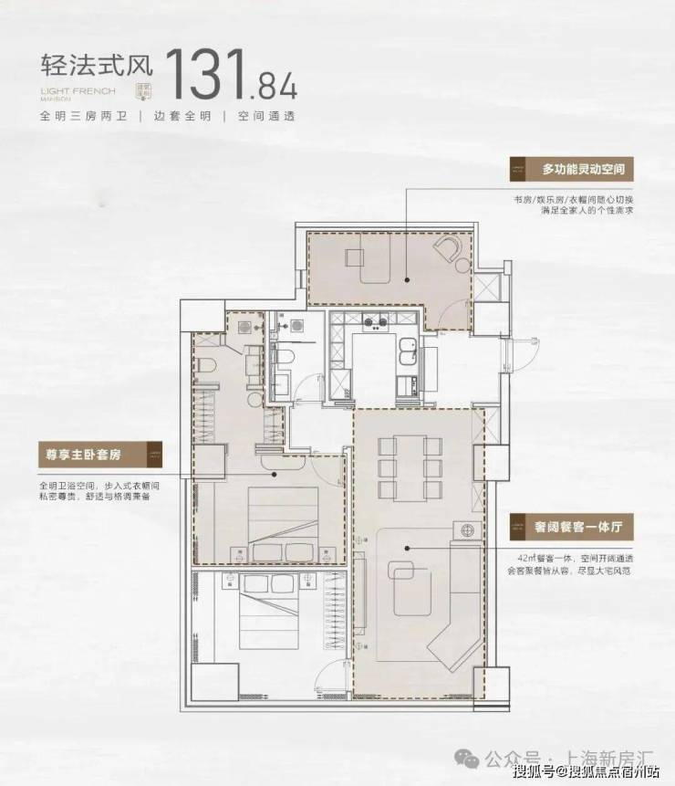 户型设计上,打破公寓常规暗间的局限,项目全部设计成全明2房或3房格局,做到没有一个暗间的居住空间,并全系标配主卧套房+双卫配置,提升居住配置。