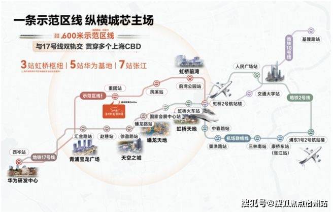 保利虹桥和颂·IN255不仅有轨交规划正在落地,且直线距离示范区线赵重公路站(在建)仅约350米,是不可多得的真轨交盘,2站前湾、3站虹桥枢纽、5站华为基地。