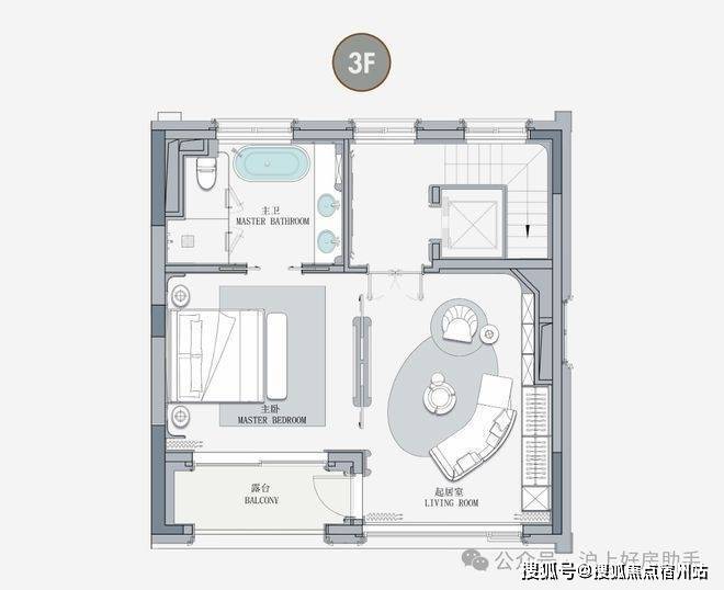 客厅互通,彰显家族生活的轩阔厅堂,2F家庭层,儿女的幸福与陪伴皆在左右,3F总裁套房式Penthouse,用具象的尺度描写人生成就的高度。