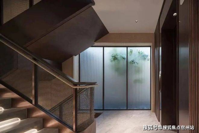 整个泳池天花板,呈现出海派拱形元素,落地玻璃窗外,是下沉式的景观空间: