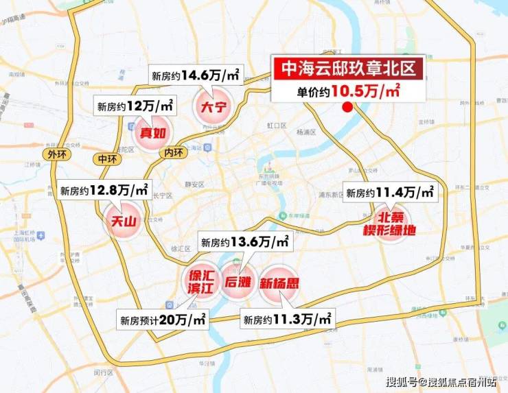 展开地图可以看到,徐滨上半年绿城19.5万/㎡售罄,即将上市的新房预计超20万/㎡。后滩项目均价约13.6万/㎡,大宁项目约14.6万/㎡,其他内中环板块大多数都超过11、12万/㎡!