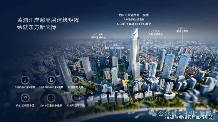浦西全新的制高点——480米的新地标坐落于此,还有约5栋300米+建筑、13栋200米+建筑,19栋摩天大楼,共同组成地标建筑群。