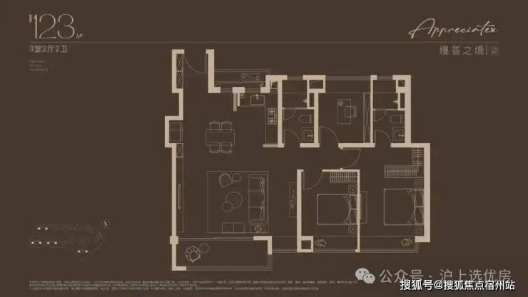 建面约123㎡3房户型,户型方正,三口之家的改善进阶之选!巧妙预留X空间,既可成为客厅空间的延伸,也可独立成室,实现更多功能想象。约12.5米南向面宽,搭配270°宽景阳台,窗外美景一览无余。