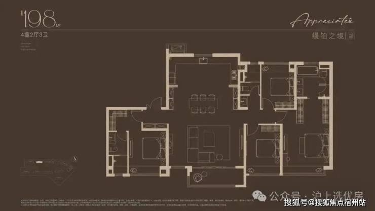建面约198㎡4房户型,嘉定“收藏级”传世大宅!塔尖人士的挚爱之选!2梯2户的设计,子母双开门礼序入户,私密尊崇门厅,彰显尊崇生活仪式感。