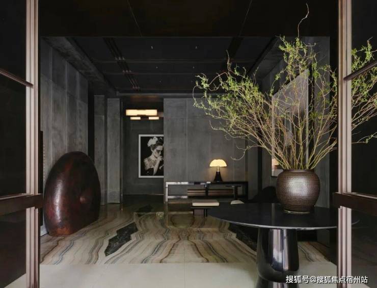家具粗粝而温润,似记忆中被反复抚触的老物件,带着时间沉淀的温度。粗粝的石材沉稳克制,温润的木质收束情绪。使人联想到安东尼奥尼《红色沙漠》对环境与心理感知的塑造——空间是情绪的投射场,人在不知不觉中被空间的叙事所包裹,最终沉入一场无法割裂的感官体验。
