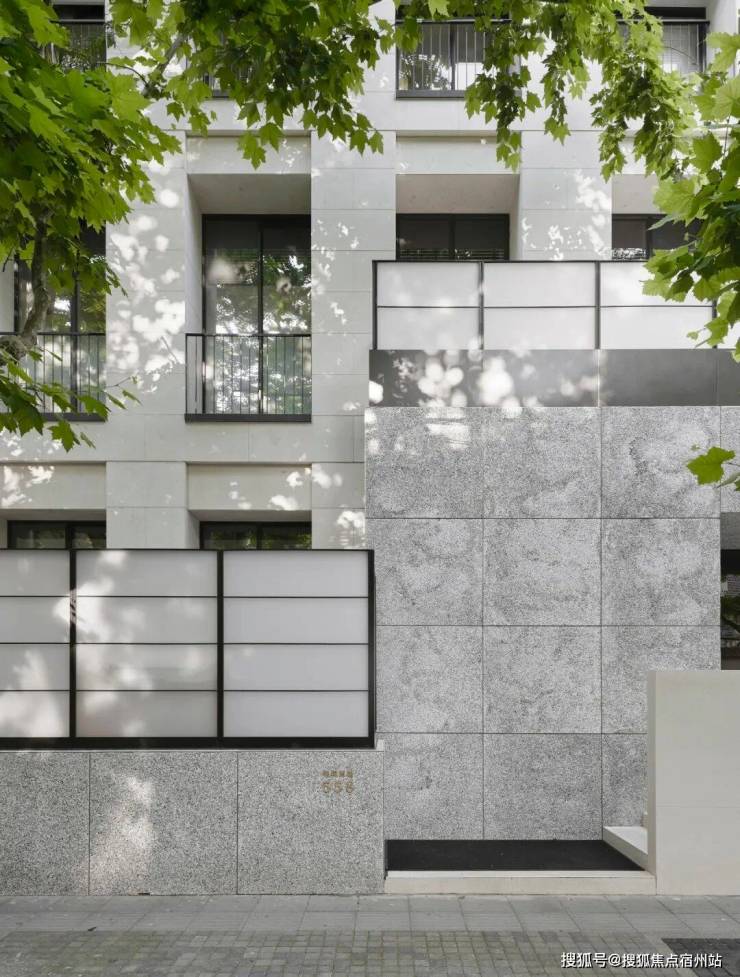 基座部分,无间设计又以雕塑般的水洗石墙面,将建筑的节奏与秩序变得有情趣,营造出过渡的层次,从外向内缓步漫游去感知它,探索它,体验它,城市喧嚣也变得静谧起来。