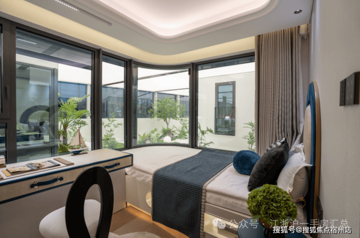 同时北侧还打造了3个飘窗,尤其是北卧无墙垛设计,飘窗与房间墙体无缝衔接、同宽延伸,视觉效果浑然一体,采光最大化,更能直接利用,铺设成一张舒适大床,彻底摆脱“小次卧”桎梏,功能与舒适大幅提升。