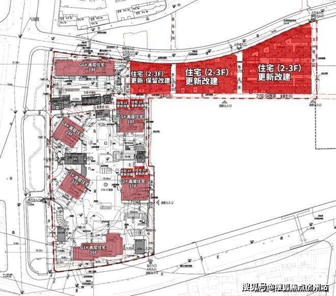 根据规划,项目由6栋14-37层的高层住宅、部分改建保留的联排别墅、合院别墅以及部分配套用房组成。