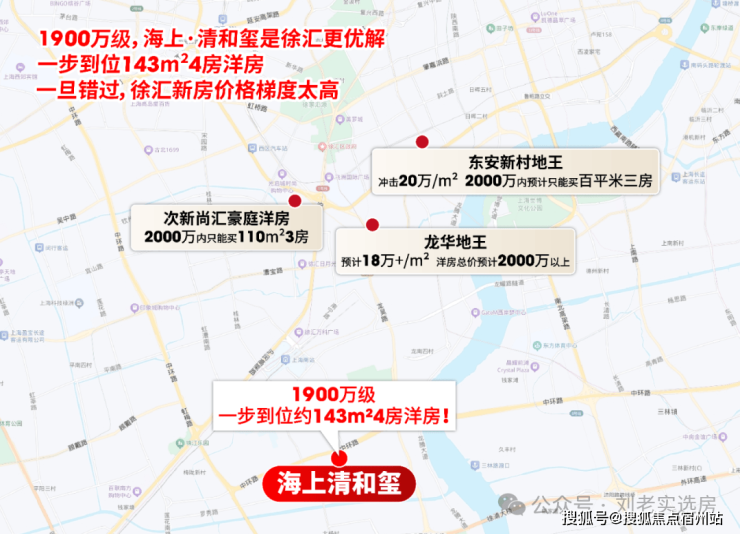 另一方面,同样徐汇区,绿城地王开出了19.5万/㎡,东安新村523亿地王预计冲击20万/㎡,龙华地王保守也要18万+/㎡。