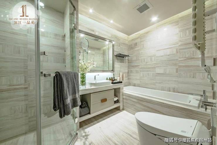 厨房就配置了铂浪高的水槽及龙头、柏丽橱柜及爱适易垃圾处理器、怡口户式中央净软水;卫浴系统选用了德立菲的卫浴、高仪龙头、卡迪欧电热毛巾架,皆为国际尖端品牌。