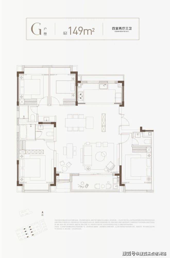 建面约149㎡的4房2厅3卫